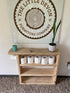 Made from recycled scaffold wood, cut, sanded and made by hand in our Dartmoor furniture workshop, in Devon. This rustic storage unit is 17cm deep. If you want to vary the height of the shelves, just let us know when you are ordering as that can be done.