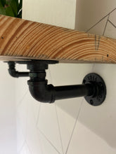 Each single wooden shelf comes with 2 Pipe brackets, powder coated in black which suit them perfectly and prevent rusting, they are made to size and are super easy to install into all walls with the correct rawl plugs. They come with fixings.