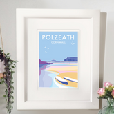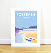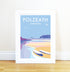 Polzeath is part of Becky Bettesworth's vintage style collection of travel posters and seaside prints from a bygone era. Award winning Devon artist, Becky, has drawn inspiration for her fresh style with a nostalgic twist from the classic railway travel posters. Looking across the golden stretch of sand and out to sea, this classic scene is adorned with the familiar sight of surf boards. Becky has chosen stunning pastel shades to capture the small seaside resort of Polzeath in North Cornwall perfectly.