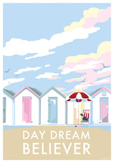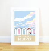 Daydream Believer vintage style, retro quote poster is created by award-winning Devon artist, Becky Bettesworth. Her quotes and vintage-style seaside prints and posters are inspired by the classic 1930s travel posters. Becky's use of pretty pastels creates a summery feel with the beach huts and golden beaches reminders of a bygone era and the perfect summer holidays and childhood memories.
