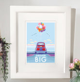 Dream Big is about the power of dreaming and visualising this becoming a future reality. The multicoloured balloons releasing shows an act of confidence and a start of a journey of faith and hope, letting go of fear and doubt and throwing caution to the wind! Taking chances and risks and not allowing fear to hold you back. The light fluffy clouds bounce around new and fresh ideas and offer a chance to be free-spirited. All your dreams and hopes rising above fear and reaching new horizons on a weightless journey just like the seagulls.