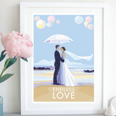 Endless Love vintage style retro quote poster created by award-winning Devon artist, Becky Bettesworth. Her quotes and vintage-style travel posters and seaside prints are reminiscent of the 1930s railway travel posters.