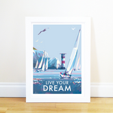 Live Your Dream vintage style, retro quote poster is created by award-winning Devon artist, Becky Bettesworth. Her quotes and vintage-style seaside prints and posters are inspired by the classic 1930s travel posters.