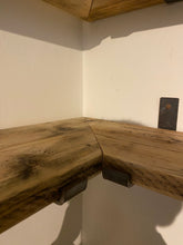 Corner shelf– This wooden shelf come with industrial metal brackets and screws included in the price. You will need to supply the rawlplugs as it will depend on the wall you are using what plug you need.