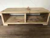 Upgrade your living space with this beautifully handcrafted TV unit, made from reclaimed materials for a unique, eco-friendly touch. Designed with both style and practicality in mind, it features a spacious surface for your TV, dedicated shelves for your Sky box or games console, and two storage compartments to keep your space tidy. Finished with solid wooden feet, this unit blends rustic charm with modern functionality.