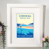 The inspiration for Becky Bettesworth's vintage-style seaside prints and posters has been drawn from the classic travel and railway posters of the 1930s. Award-winning artist, Becky's seaside picture of The Camel Estuary also features Padstow and Rock on the North Cornwall coast. The River Camel forms an area of coastal and natural beauty and Becky has captured this in her nostalgic but fresh style making it a perfect gift for anybody who has visited.