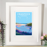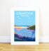 Crantock Beach travel poster and seaside print by Becky Bettesworth.