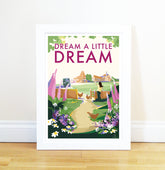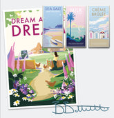 Dream a Little Dream is created by award-winning Devon artist, Becky Bettesworth. Her quotes and vintage-style seaside prints and posters are reminiscent of the 1930s railway travel posters. Becky's fun use of colour in this picture will bring back many happy holiday memory. A reminder of English countryside days and happy family times in nature. Fresh air and good country living.