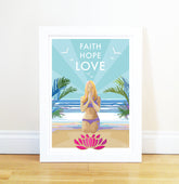 Created by Becky, she wanted to combine her love of the vintage nostalgic seaside with her love of yoga, meditation, and well-being. Faith Hope Love shows that when we balance our thoughts and we are kind and loving to ourselves and others we experience a sense of inner peace.