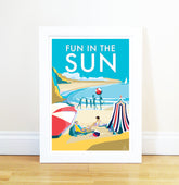Fun in the Sun is created by award-winning Devon artist, Becky Bettesworth. Her quotes and vintage-style seaside prints and posters are reminiscent of the 1930s railway travel posters. Becky's fun use of colour in this picture will bring back many happy holiday memories.