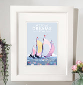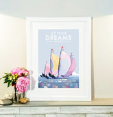 Let Your Dreams Set Sail vintage style, retro quote poster is created by award-winning Devon artist, Becky Bettesworth. Her quotes and vintage-style seaside prints and posters are inspired by the classic 1930s travel posters.